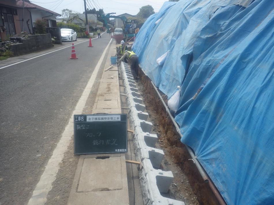 基礎コンクリートの上に据えていますが、道路側溝の高さまで まだ追いつきません。