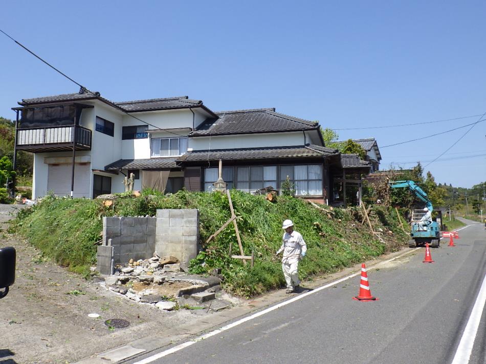 雑木が道路まで覆いかぶさり法面の心配もされていたようで