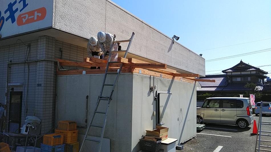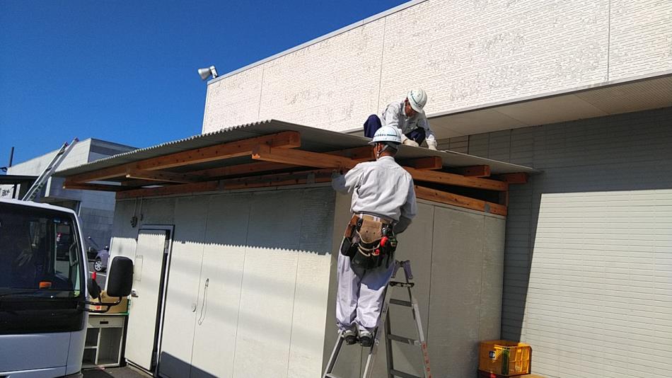 商売をしている同級生からの依頼で屋外冷蔵庫の屋根替えを
