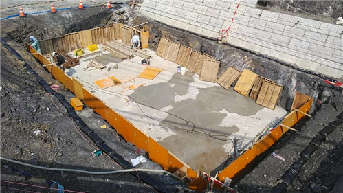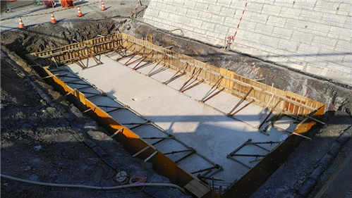 通常の施工方法と違い、型枠を内側に設置し地山と構造物の境にコンクリートを