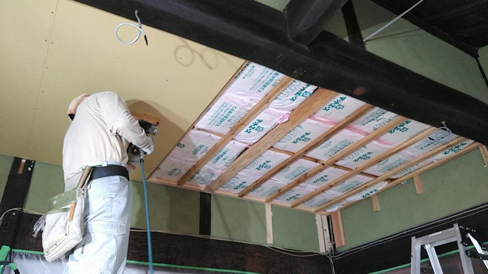 室内写真ですが、天井もしっかり断熱しました。