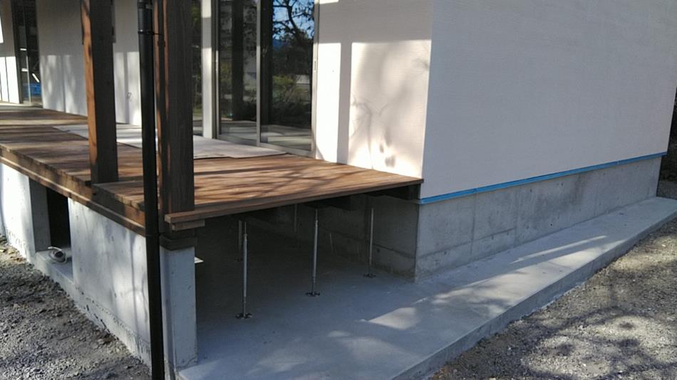 鋼製束を利用した天然木ウッドデッキも屋外収納には、大容量で最適です。