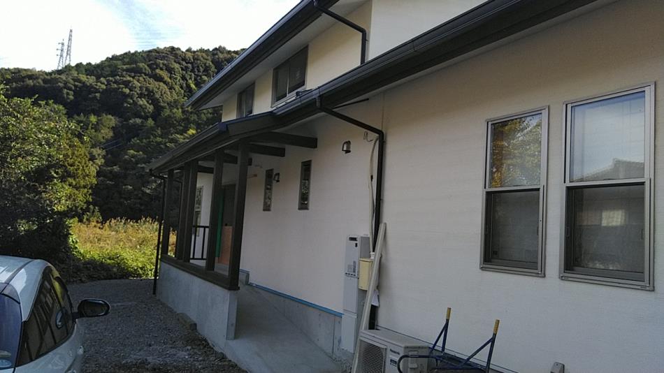 屋外では、雨樋の取付や目地施工が完了し足場が撤去されました。
