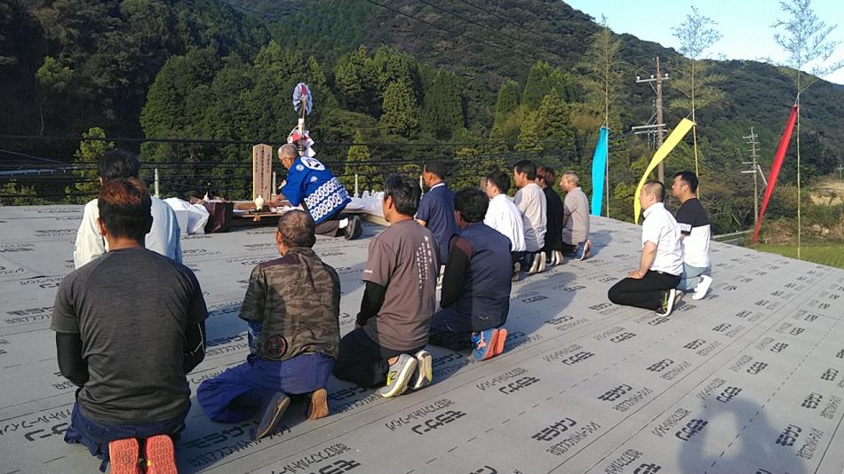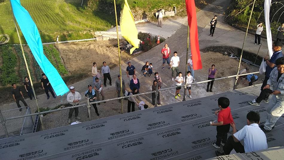 上棟式を知らせる五色の旗もちょっとだけ見えています。