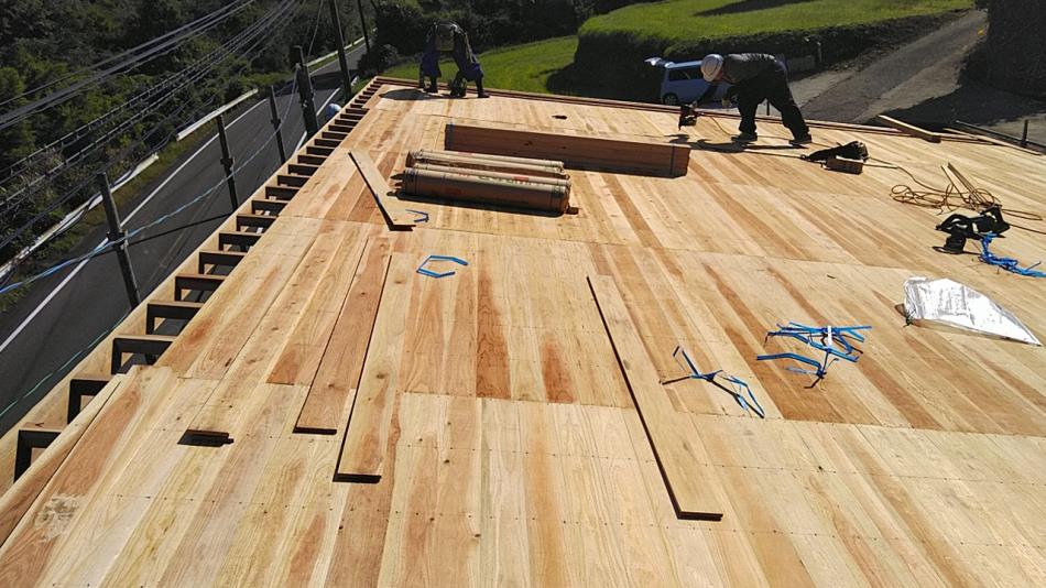 裏板にルーフィングを張ると雨漏りの心配がなくなります。