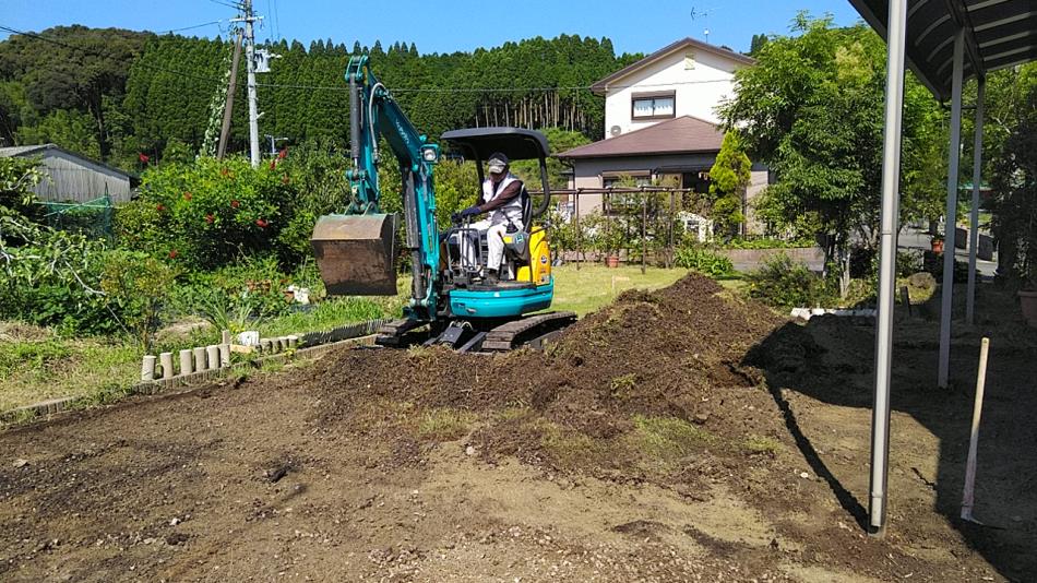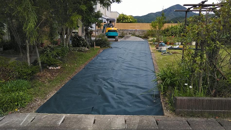 一度全部撤去して、基盤の高さを調整したあと防草シートを敷設します。