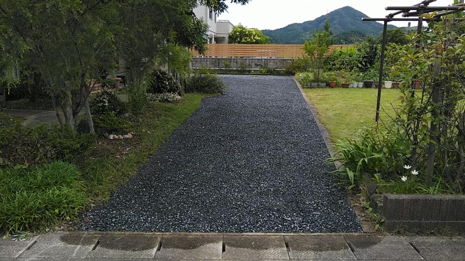 当時から砕石で仕上げた庭でしたが、芝生の元気がよく砕石の中に侵食してきましたので、