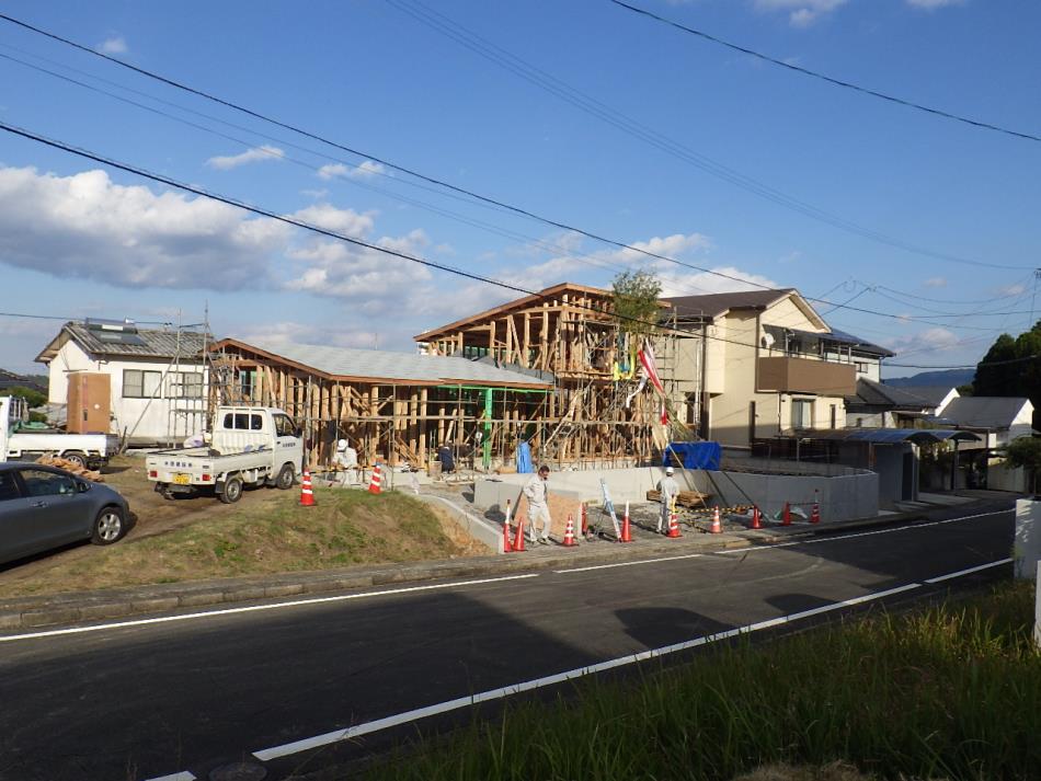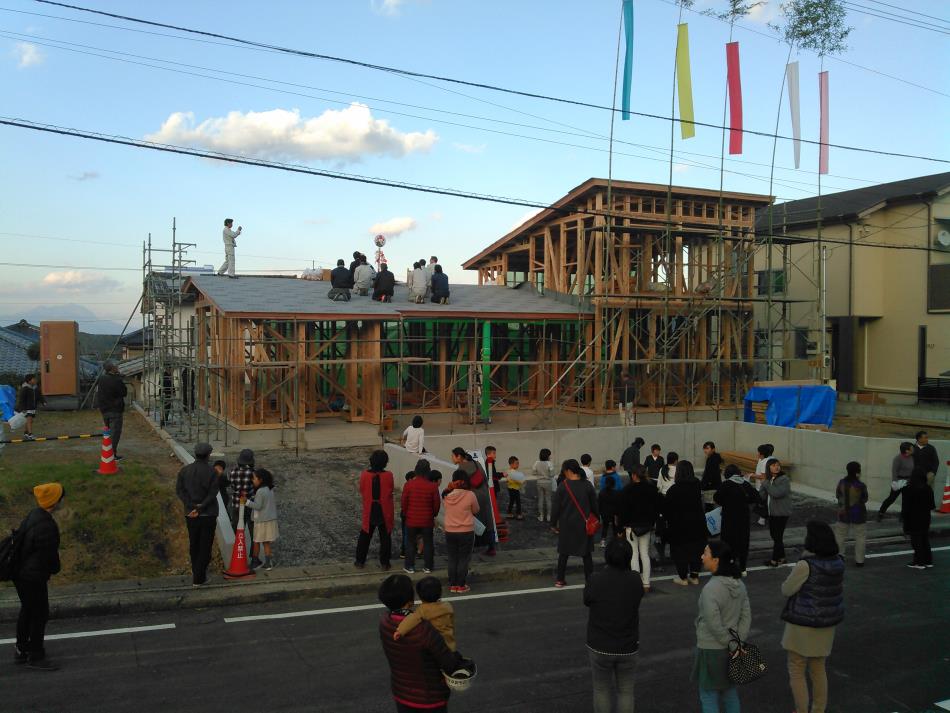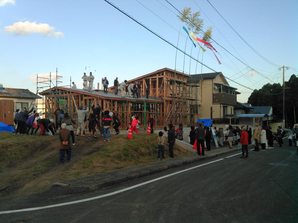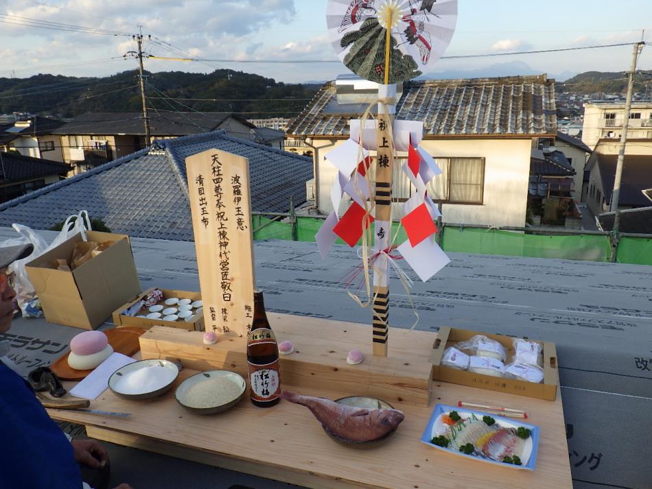 前回書いておりました、上棟式が晴天のなか無事執り行われました。