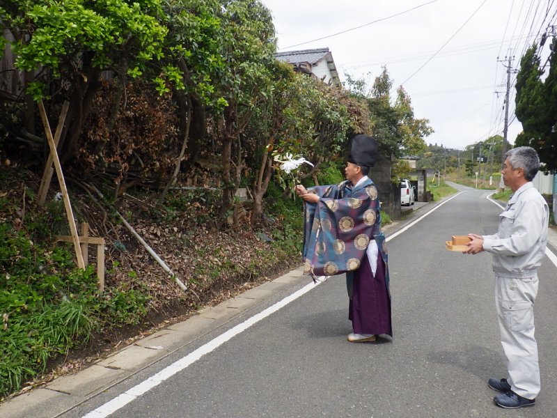 四方清祓いの儀では、擁壁工事の箇所お祓いも入念に行って頂きました。