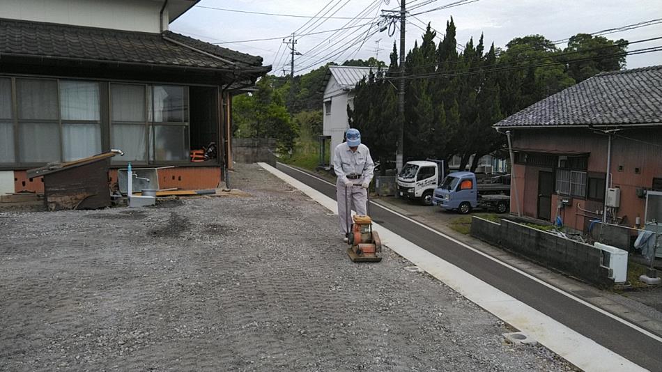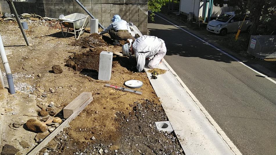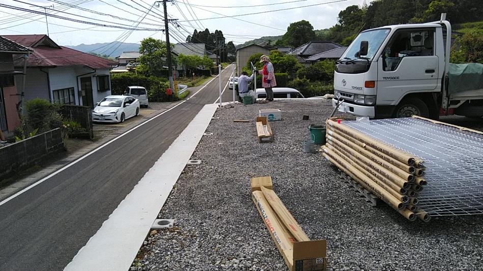 埋戻しも完了、砕石も敷均し、フェンス設置開始です。