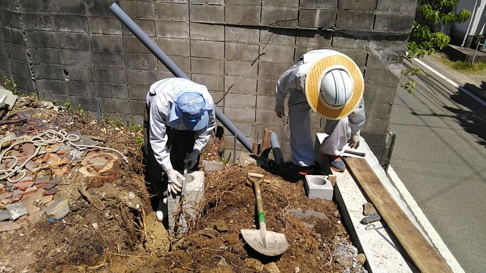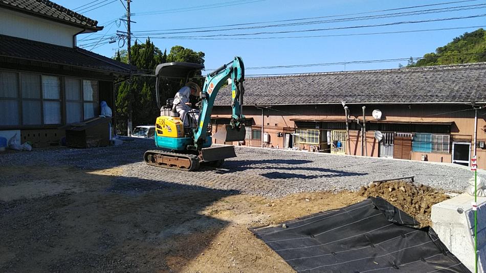 基礎コンクリート床掘に重機も準備しましたが、狭小箇所での作業になりましたので