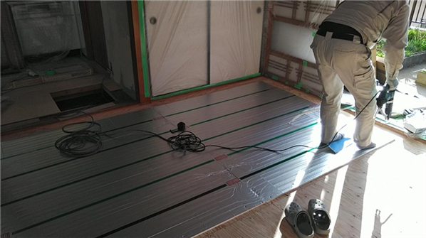 和室を畳からフローリングに変更する過程で床暖房を施工しました。