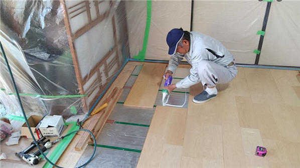 但し、床暖房対応のフローリングと根太ボンドで施工します。