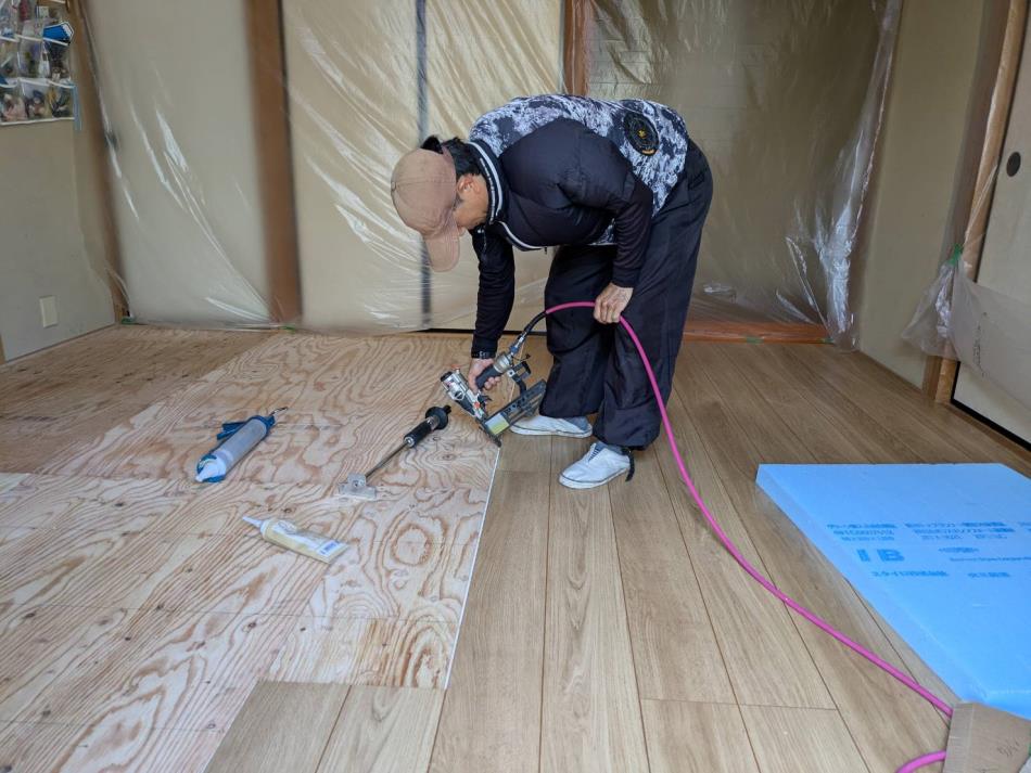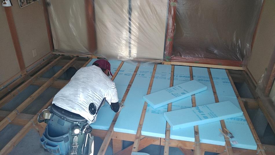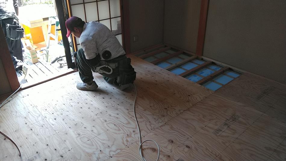 今まで畳が断熱の役割をしていましたので、捨て貼りとフローリングだけでは床断熱が
